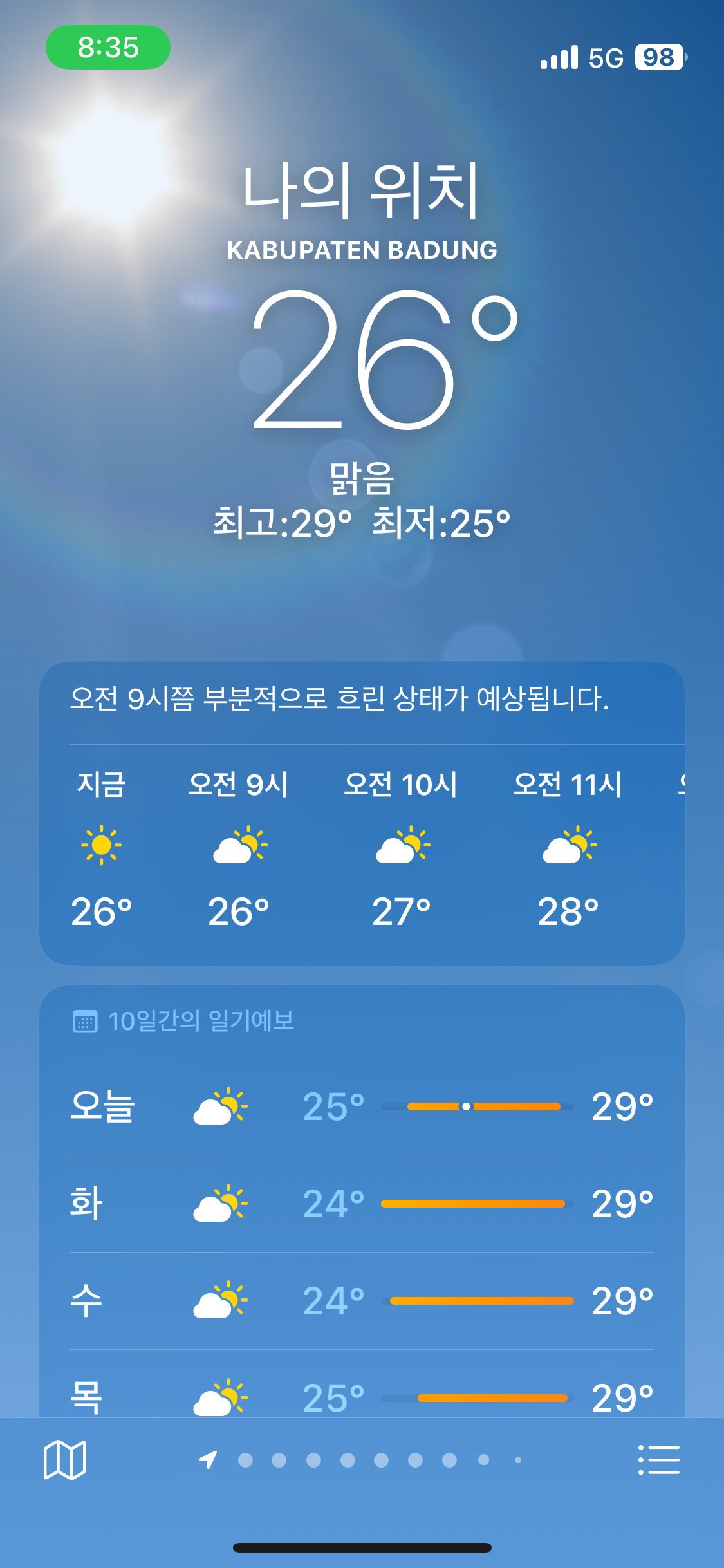기온은 최고 29도에서 최저 25도까지이고 지금은 26도입니다 ㅎㅎ